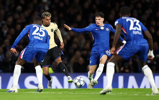 切尔西首发:1-桑切斯、3-库库雷利亚、23-查洛巴、24-詹姆斯、27-古斯托、29-福法纳、25-凯塞多、8-恩佐、7-内托、41-埃斯特旺、49-加纳乔巴萨首发:13-霍安·加西亚、3-巴尔德、4-阿劳霍、5-库巴西、23-孔德、24-埃里克·加西亚、16-费尔明、21-德容、7-费兰、9-莱万、10-亚马尔开场之后,巴萨后场基本被压着打,切尔西的进攻持续形成冲击力,一波接一波。