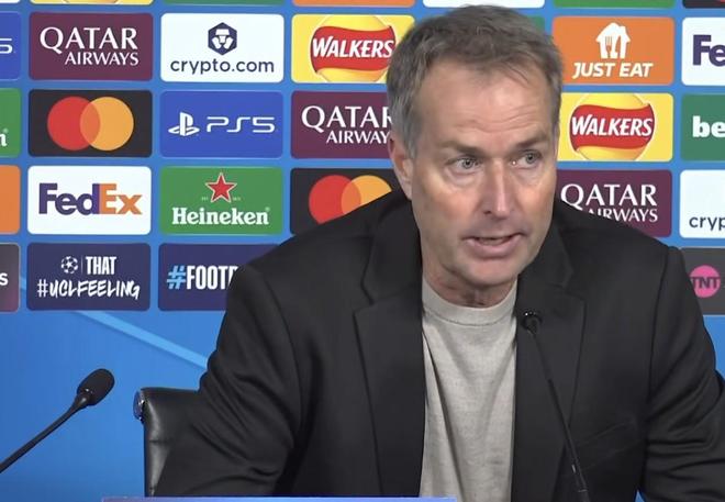 以下是发布会内容谈及本场比赛尤尔曼德表示:“我们尽量在控球时保持冷静,并尽可能踢出自己的比赛风格。当然,比赛中也有一些时刻需要一些运气,同时今晚守门员的发挥也非常关键。但归根结底,我为球队以及我们的比赛方式感到非常自豪。今晚能在客场拿到欧冠三分,这并非理所当然,但我们表现得非常出色,我为全队的努力感到由衷自豪。”比赛结束后你对队员们说了什么?我知道你通常不会透露更衣室里的情况,但今天能否请你分享一下?尤尔曼德: “基本上就像我刚才提到的那样,但我尤其为球队展现出的精神面貌感到自豪。我认为我们一直在不断学习。你之前问我,我们从对巴黎圣日耳曼和拜仁的比赛中学到了什么——那两场比赛,我们过于被动,没有踢出自己的风格。而今晚,我们展示了真正想踢的足球哲学。无论对手是谁,我们都必须坚持自己的风格。当然,比赛中一定会遇到困难,我们面对的是欧洲最强的球队之一。但最终,我们要尽可能在比赛中贯彻自己的理念。在控球时,我希望所有球员都能参与其中。我觉得今晚我们做到了,并且展现出了非常大的勇气。这场比赛是一个值得铭记的夜晚,也希望它能让我们更加明确未来的方向,这将成为球队继续成长的动力。我们还有很多可以学习和提升的地方。我相信这支球队潜力巨大,而今晚他们展现出的个性和勇气令我非常、非常高兴。”前不久,有很多人怀疑你们是否能晋级淘汰赛。现在两场比赛后,两场胜利。你怎么看欧冠的形势以及你在其中的角色?现在你是否觉得自己必须带队晋级淘汰赛?尤尔曼德: 我不认为这是一种必须完成的任务,但确实比两场比赛前的形势好得多。我们在本菲卡赢球了,现在又在曼城客场取胜——这两支球队都非常难打。所以现在情况看起来更乐观,不过欧冠依然充满变数。我们还是要一场一场地来。接下来是德甲对阵多特蒙德,三天后又在杯赛面对同一个对手。所以我们会继续逐场应对。当然,从欧冠的角度来说,我们的形势确实比之前更好。像今天这样的比赛,还有在里斯本的那场胜利,都给了我们很大的信心。但更重要的是,我们踢球的方式和球队展现出来的质量让每个人都能看到——我们确实拥有这样的实力,同时也依然有提升和学习的空间。这才是最关键的。之后我们就继续努力,一场一场往前走。”谈及此前飞机航班出现的问题尤尔曼德:“是的,途中确实有些状况。我们有九名U19球员进了大名单,这是非常特别的。我和幕后团队聊过,他们说‘下次我们还这样做’,我说不不不,不需要再经历这样的事情。比赛中有时候球队需要克服一些复杂或意外的情况,这就是足球的一部分,也是一部分生活,也是一部分团队建设。但我们不希望再出现类似状况,希望下次旅程往返都顺利。”之前你曾让埃切韦里和本-萨吉尔上场,并给他们一些指导。能分享一些信息吗?他们本场未出场,近期出场时间也不多,你觉得他们需要做些什么才能获得更多机会?尤尔曼德: “他们表现不错,是非常好的球员。我只是想让他们提前了解比赛情景。比赛中有些位置可能会用到他们,我希望他们能准备好应对这些情况。像今天三中场两前锋阵型,这不是他们的正常位置,所以我需要提前准备。但最终,我觉得场上的球员表现非常好。希克虽有些吃力,但定位球中非常重要。这次我决定坚持场上球员,争取胜利。他们两人潜力巨大、非常年轻,他们的机会会到来。毫无疑问,这些位置竞争激烈,但机会会到来的。”波库踢右路,如何看待他的灵活性?尤尔曼德: “我来这里时间不长,这个位置有六号球员竞争。很多队员本身能胜任这个位置。波库表现非常好,看到球员在不同位置上发展很棒。灵活性对球队非常重要,他表现很好,像全队其他球员一样。”弗莱肯在前几场比赛中表现如何?本场是他在欧冠中的最佳比赛,他被评为最佳球员,你如何评价他的成长?尤尔曼德: “他的表现太棒了,我从未怀疑弗莱肯。他的脚下技术被低估,他今天在关键时刻有重要扑救。拥有这样的门将对我们的比赛至关重要。他每天早起训练,非常专注和用心。看到他今天的表现,我非常高兴。”关于埃切韦里,他出场时间不多,有可能在一月份提前结束租借吗?再谈谈曼城的轮换,周末和今天他们换了10名球员,首发球员中没有哈兰德和福登,他们是不是低估了本场比赛的挑战?尤尔曼德:“这个问题不要问我。埃切韦里是我们非常喜欢的球员,很高兴他在我们的队里。他来之前在原球队一年也就踢了大约110分钟,我们一直在努力培养他。我们欣赏他在更衣室和球场上的表现,他的潜力非常大。至于曼城,不管他们派上谁,整体水平都非常高。比赛总共有100分钟,重要的不是只有谁首发,谁来踢完比赛同样关键。我认为我们今天做得非常好。”【上咪咕独家看英超】
