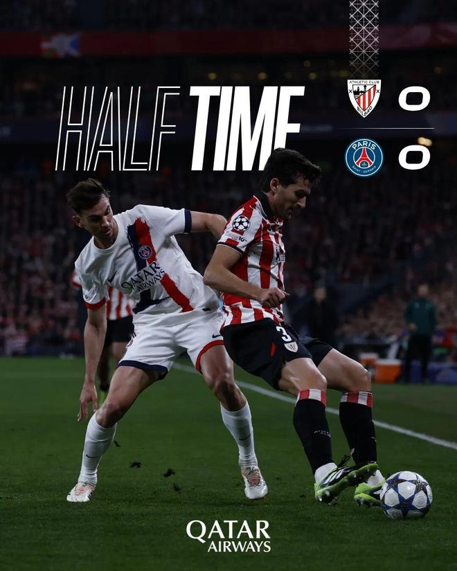 上半场比赛结束,我们暂时和毕尔巴鄂竞技战成0-0。