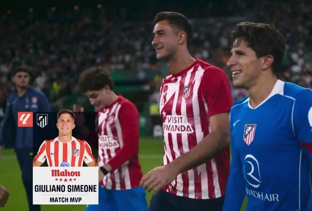 西甲第10轮客场挑战皇家贝蒂斯的比赛中,朱利亚诺-西蒙尼开场仅3分钟就用一记禁区前沿的凌空抽射闪击得手,从而为马竞打开了胜利之门,马竞也凭借这个进球乘胜追击,以2-0击败贝蒂斯迎来了本赛季客场比赛的首胜。最终,凭借自己的决定性表现,朱利亚诺-西蒙尼成功当选了全场最佳球员。