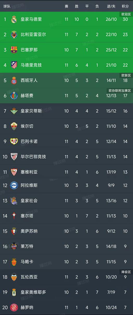 维尼修斯罚丢了点球下半场卡雷拉斯世界波建功,打进了皇马生涯处子球,最终皇马4-0大胜,迎来西甲4连胜,目前的积分上涨到30分,领先了第二名比利亚雷亚尔7分,多赛一轮领先了巴萨8分,巴萨本轮的对手是主场对阵埃尔切!瓦伦西亚遭遇6轮不胜,积分停留在9分暂列第18名。