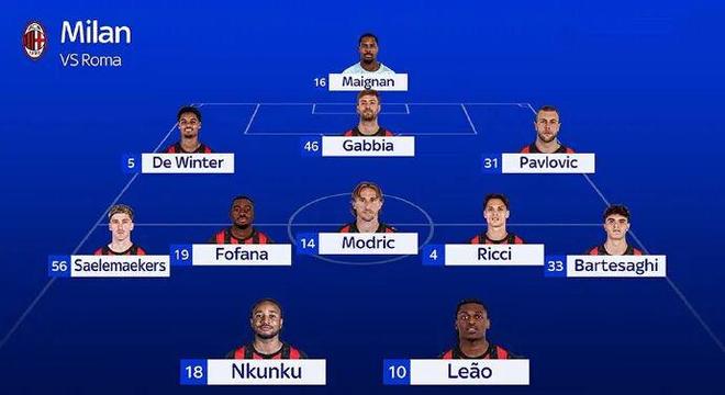 米兰圈北京时间11月3日凌晨3:45,2025-26赛季意甲联赛第10轮,米兰将坐镇主场迎战罗马。据记者Antonio Vitiello报道,托莫里和亚沙里入选米兰对阵罗马的大名单,但S-希门尼斯、普利西奇和拉比奥特确定缺阵。意大利天空体育给出了本场比赛米兰的预测首发:
