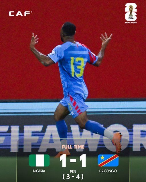 而点球大战,尼日利亚前2轮均罚丢,尽管民主刚果前5轮也2次罚丢给了他们机会,关键的第6轮阿贾伊失点,直接宣判了尼日利亚的死刑。