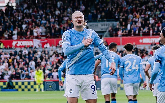 先来看一组比赛数据,哈兰德在对阵布伦特福德的比赛当中再次取得了进球,这已经是他在本赛季