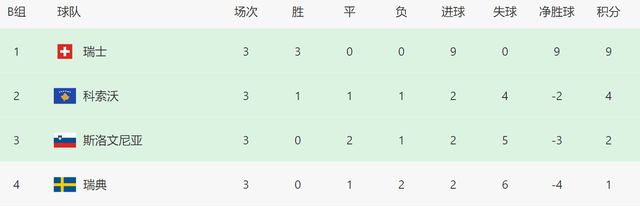 补时阶段,瑞士队反击,曼赞比右路带球杀进禁区,最终小角度抽射破门,比分也锁定为2-0,最终瑞士队在客场完胜对手。本届世预赛,瑞士队3场全胜,在B组一骑绝尘,他们大概率将小组直接出线。