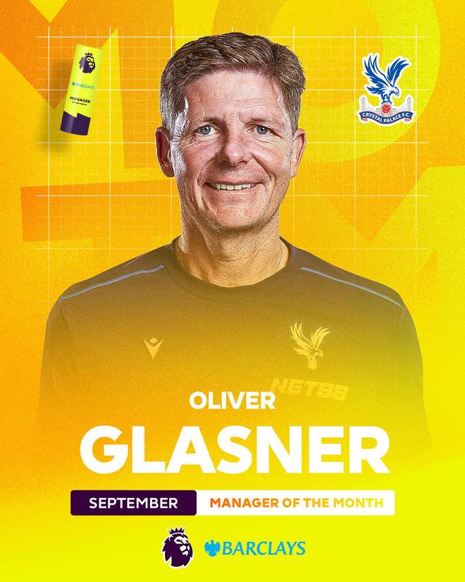 英超九月最佳主教练,这也是他执教生涯首次获得该项荣誉。这位51岁的主帅在四人候选名单中脱颖而出,击败了瓜迪奥拉、阿尔特塔和勒布理斯。在格拉斯纳的带领下,水晶宫在九月保持不败,球队各项赛事的不败纪录已延续至19场。九月,水晶宫在主场与桑德兰0比0战平,随后客场2比1力克西汉姆联,并在与利物浦的比赛中上演绝杀,从而在九月底成为