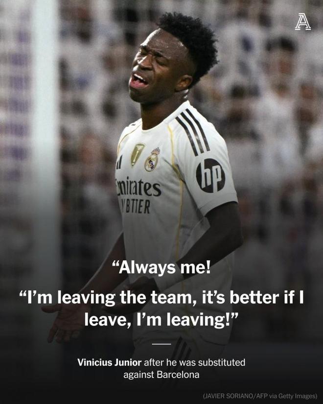 维尼修斯下场时大喊“我要走了”以及比赛后双方球员的大规模冲突,让皇马赢得国家德比的喜悦被冲淡了不少。《阿斯报》记者马努德胡安透露了维尼修斯暴怒的原因,在哈维-阿隆索执教之后,维尼修斯在皇马的地位直线下降,导致维尼修斯在国家德比里失态。被5.6亿人围观的皇马“内讧”《阿斯报》记者马努德胡安指出,“对皇马来说,这是一个幸福的星期天,但幸福是不完整的。任何一种伤害,都比不上阿隆索与维尼修斯之间的关系受到的伤害。所有人都从之前的一些事件感觉到两人关系不佳,但在这起事件里,阿隆索与维尼修斯之间的距离完全被显现出来,并且被全球5.6亿观众目睹。”比赛的第71分钟,维尼修斯被替换离场,这一幕让维尼修斯气坏了。他对着替补席大喊,“总是我,我要离开球队,我最好是离开,我要走了!”阿隆索冷静旁观,看着维尼修斯骂骂咧咧地走回了更衣室。马努德胡安透露,“这并不是一个孤立的事件,因为在维尼修斯看来,在阿隆索执教之后,他受到了在安切洛蒂执教时没有受到过的冷淡对待。”“首先,他已经失去了不可动摇的地位。在13场比赛里,维尼修斯3次担任替补,这标志着他在队内的地位下降。其次,在国家德比里,他没有参与进球,但在比赛的某个时段他偶然有精彩表现。被提前换下,成了引发这场火灾的火花。”叫停续约谈判,主力位置不保在阿隆索接手之前,维尼修斯团队几乎与皇马达成了续约协议。然而,在阿隆索执教之后,皇马在世俱杯之后叫停了续约谈判。维尼修斯与皇马的合同签到2027年,在皇马叫停续约谈判之后,维尼修斯团队认为阿隆索促使俱乐部做出了这样的决定。8月,维尼修斯团队就表示,“这不会是一个轻松的赛季。”自从阿隆索执教以来,维尼修斯就逐渐失去了主力位置。世俱杯半决赛对阵巴黎,阿隆索本来计划不会让维尼修斯首发,阿诺德意外受伤,维尼修斯得到了首发出场的机会,但改打右边锋让维尼修斯表现失常。在本赛季的13场比赛里,维尼修斯出场880分钟,而在西甲,维尼修斯10场出场699分钟。与此同时,罗德里戈10次出场,达到326分钟,其中西甲8次出场233分钟。比赛结束之后,阿隆索冷静处理了这件事情,但他也明确表示,“我们当然会讨论这件事,但我不想偏离重点。维尼修斯做出了很多贡献,至于其他的事情,我们以后再谈。”然而,皇马内部人士向《马卡报》透露,“他是第三队长,必须做出表率。这么做是毫无必要的,对他来说会是一个教训。”