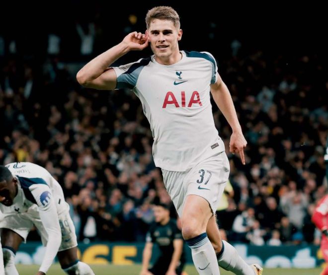 欧冠联赛阶段第4轮的一场比赛展开争夺,热刺在主场迎战哥本哈根。热刺在联赛取得5胜2平3负的战绩,拿到17分,排名第6。在欧冠赛场,热刺前3场小组赛1胜2平,击败了比利亚雷亚尔,战平博德闪耀和摩纳哥。如今再次征战欧冠,热刺面对的是实力比较弱的哥本哈根。结果,热刺制造惨案,踢爆哥本哈根。热刺排出4231阵型。穆阿尼顶在最前面。布伦南-约翰逊、哈维-西蒙斯和奥多贝尔的进攻组合联袂出击。本坦库尔和萨尔组成双后腰。波罗、罗梅罗、范德芬和乌多基4后卫首发出战。维卡里奥担任首发门将。热刺首发阵容总身价4.47亿欧元。而哥本哈根首发阵容总身价只有4715万欧元。比赛开始后就进入热刺的控球节奏。第15分钟,佩雷拉踢人犯规,被出示黄牌。4分钟后,热刺进球了。依靠一次反击机会。布伦南在禁区外过掉出击的门将,冷静推射空门得手。门将的这次出击太冒险了。第39分钟,穆阿尼犯规,也被出示黄牌。半场结束,热刺1-0领先哥本哈根。下半场易边再战,哥本哈根率先进行换人调整,拉尔森被换下,达达松替补上场。第51分钟,热刺再次进球。穆阿尼在禁区左侧把球回做,奥多贝尔后插上直接低射,球进了!第57分钟,布伦南-约翰逊铲球犯规,被出示黄牌。但在VAR的介入下,裁判看了回放,改判红牌。热刺少一人作战。第61分钟,热刺进行换人调整,帕利尼亚替补上场,哈维-西蒙斯被换下。3分钟后,人数劣势的热刺再次进球。范德芬带球长途奔袭,突入禁区后推射破门。真是难以置信,作为中后卫的范德芬竟然打进如此漂亮的反击进球。第67分钟,热刺再次进球。帕利尼亚门前包抄推射打进,彻底杀死比赛。比赛最后时刻,热刺获得点球机会。但是,里沙立松罚丢了。最终,热刺4-0横扫哥本哈根。