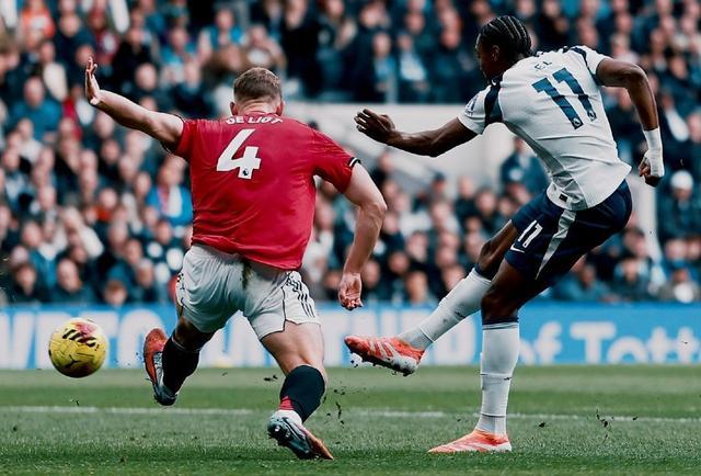 热刺积极拼抢,试图发起犀利进攻,但接连被曼联中后场球员化解,反倒不得不回收防线。上半场过后,曼联暂以1球领先,主场作战的热刺进攻表现上多少有点慢热。下半场易边再战,两队继续展开高强度对抗,热刺接连获得起脚机会,但无论是罗梅罗的近距离攻门,还是帕利尼亚的凌空射门,均被曼联门将拉门斯化解!第62分钟,布伦南-约翰逊破门,但因越位在先无效。直到第84分钟,曼联球员中场被断,乌多吉左侧传球,特尔转身破门,热刺1-1扳平!