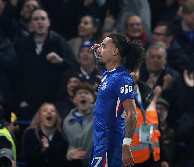 中场休息恢复体力后,切尔西的强攻终于收到了效果;第51分钟,加纳乔左路一对一面对防守球员扣球闪出角度传中,古斯托后点埋伏到位高高跃起头球入网,1:0!这是古斯托在切尔西的第一粒进球。第62分钟,加纳乔还是在左路做文章,恩佐绕到左侧外脚背横敲,克雷伊奇解围险些自摆乌龙;随后马雷斯卡令旗一挥,埃斯特旺换下了状态一般的德拉普。