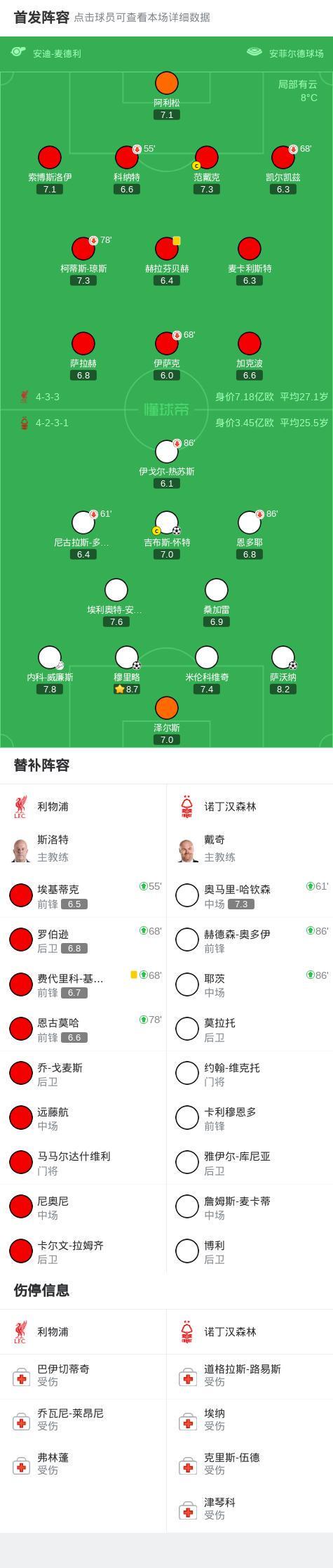 北京时间11月22日,英格兰足球超级联赛第12轮,利物浦主场迎战诺丁汉森林。上半场森林角球,穆里略抽射破门。下半场萨沃纳开场破门,之后吉布斯-怀特中路补射破门锁定胜局。最终利物浦0-3不敌森林近7轮联赛6负。关键事件第33分钟,森林开出角球,穆里略抽射破门!利物浦0-1落后!