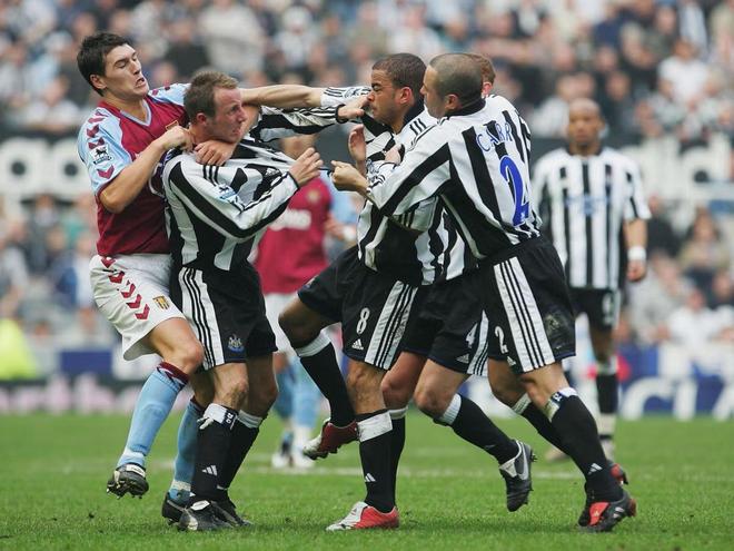 而最著名的一次自然是2005年纽卡斯尔联的李·鲍耶和基隆·戴尔在主场圣詹姆斯公园球场打架,双双被红牌驱逐。那次打斗是如此激烈,以至于鲍耶的球衣都被扯破了,对手阿斯顿维拉球员都看不过眼,巴里加入了劝架行列。1993年,利物浦名宿麦克马纳曼和门将布鲁斯·格罗贝拉在默西赛德郡德比中大打出手,二人互推脸部,却都没有遭到红牌。