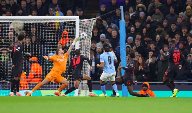 勒沃库森最近两轮联赛狂轰9球,取得联赛+欧冠的3连胜,欧冠前4轮,药厂1胜2平1负打进6球丢掉10球。开场不到3分钟,曼城就利用连续的角球狂轰滥炸,阿克的近距离射门,居然被荷兰国门弗莱肯扑了出来。