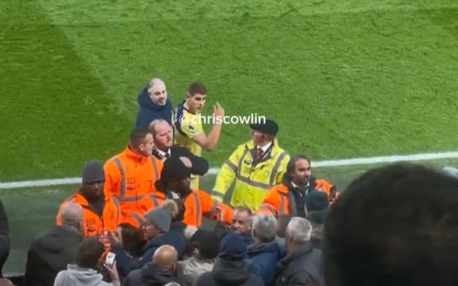 这位从拜仁慕尼黑租借而来的中场球员翻过广告牌,与愤怒的热刺死忠进行了交流。