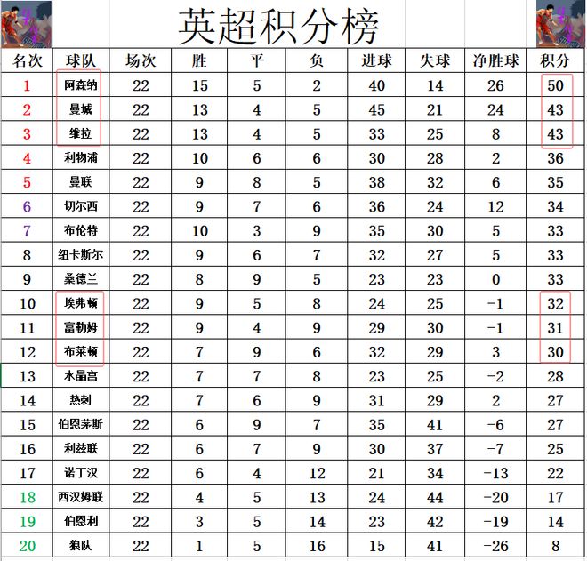 积分榜方面,阿森纳现在的冠军相是愈发明显了,他们本轮在客场爆冷被保级弱旅诺丁汉森林逼平,然而两个追赶者都未能追上来,曼城在德比大战中输给曼联,维拉则是在主场输给了埃弗顿,这样的话本轮阿森纳反而是比上轮扩大了1分的领先优势,领先曼城和维拉7分。布莱顿今天无力赢球,绝平拿到1分,也就无力超过富勒姆和埃弗顿冲进上半区。