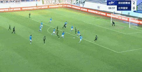 比赛第37分钟,林良铭越位在先,法比奥进球被判无效。比赛第67分钟,何宇鹏横穿,张玉宁打空门得手。北京国安1比2深圳新鹏城。