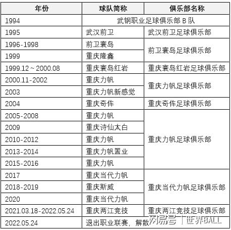 2022 重庆两江竞技参考资料维基百科:重庆两江竞技足球俱乐部英文维基百科:Chongqing Liangjiang Athletic F.C.百度百科:重庆两江竞技足球俱乐部重庆两江竞技足球俱乐部官方微博上游新闻-重庆晨报.两江潮 | 辉煌与沉浮!从六易队徽,看重庆职业足球25年发展史[Z/OL].(2021.12.07).https://www.hubpd.com/hubpd/rss/zaker/index.html?contentId=6917529027642019818.扬子晚报.扬子晚报:怎一个乱字了得!--看力帆“借壳还魂”[Z/OL].(2003.12.27). http://sports.sina.com.cn/s/2003-12-27/1219134066s.shtml.重庆晨报.力帆成功收购红塔 双方签字画押达成了转让(图)[Z/OL].(2003.12.27). http://sports.sina.com.cn/s/2003-12-27/0347133750s.shtml.搜狐体育.长沙两千万收购力帆 谢晖符宾等24名球员随壳转让[Z/OL].(2004.01.08). https://sports.sohu.com/2004/01/08/16/news218151640.shtml.乐正昶.红塔沉浮[Z/OL].懂球帝.(2019.03.06). https://m.dongqiudi.com/article/923259.html.每日新报.力帆改名重庆奇伡 将出现在首届中超联赛赛场上[Z/OL].(2004.02.01). https://sports.sina.com.cn/s/2004-02-01/0857157148s.shtml.王雪.“75年·75人”|大田湾的“雄起”声时常在耳边回响[Z/OL].75年重庆纪事.(2024.09.27). https://web.12371.gov.cn/content/2024-09/27/content_468248.html.