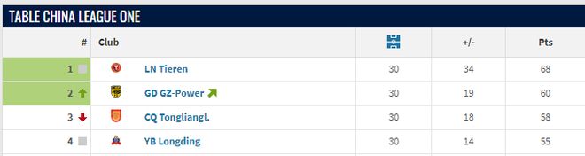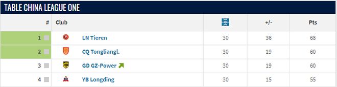 在即时积分榜上,广州豹以60分排名第二位,而重庆铜梁龙以58分排名第三位。