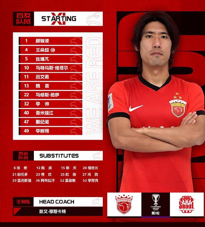 本场比赛,上海海港在首发上派出了1-颜骏凌、4-王燊超、5-张琳芃、13-魏震、32-李帅、40-吾米提江、10-维塔尔、22-尤萨、11-吕文君、47-蒯纪闻、49-李新翔的阵容。从首发来看,上海海港没有派出最强阵容,两大主力外援缺席,也是直接影响了球队战斗力,场面明显处于下风。